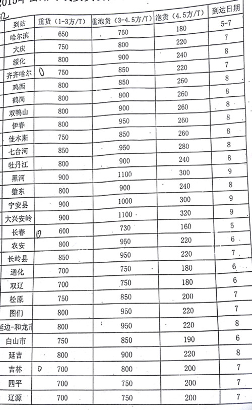 我們成都到長嶺縣物流價格表:
