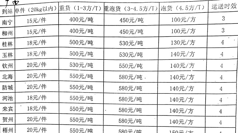 成都到柳州物流專線價格
