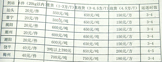 下一篇:成都到揭陽物流專線運費怎么算?