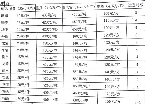 成都到塘下物流專線幾天到,運費怎么算?